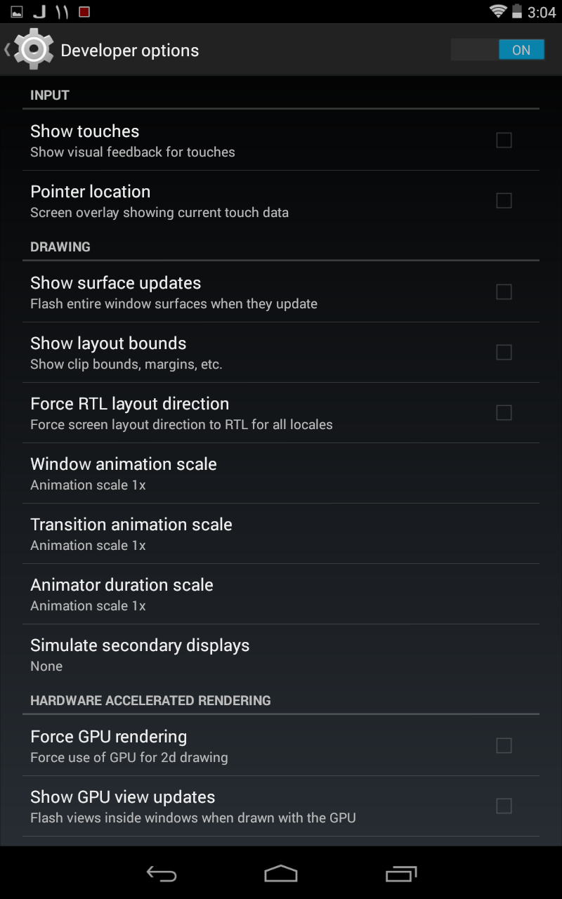 پس از روشن کردن گزینه های توسعه دهندگان در این منو به دنبال گزینه های: